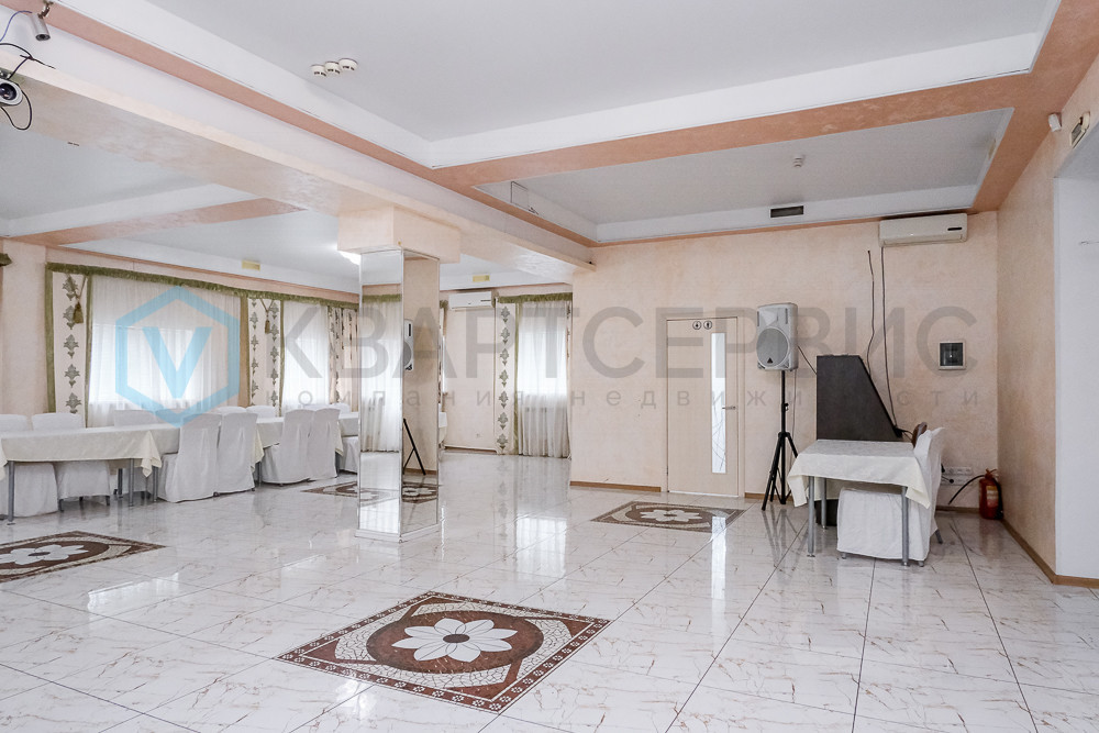 Здание имеет три этажа, один из них цоколь. В цоколе расположена полноценная кухня и кафе. На первом этаже большой банкетный зал, гардероб, санузлы и технические помещения. На втором этаже офисные помещения и салон красоты. Функционал здания широкий, возможна организация торговых площадей и т. д. Земельный участок находится в собственности, продажа вместе с землей!
