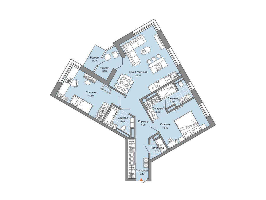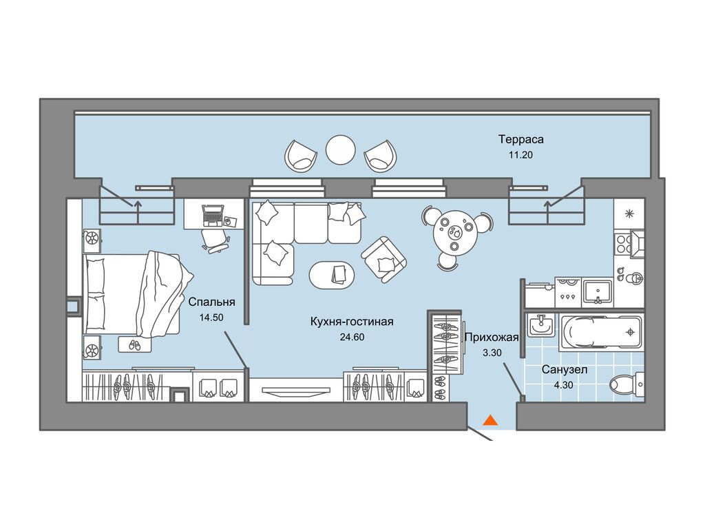 2-х комнатная квартира с евро-планировкой и стильным дизайном в современном стиле контемпорари. Идеальный вариант для ценителей комфорта и удобства.