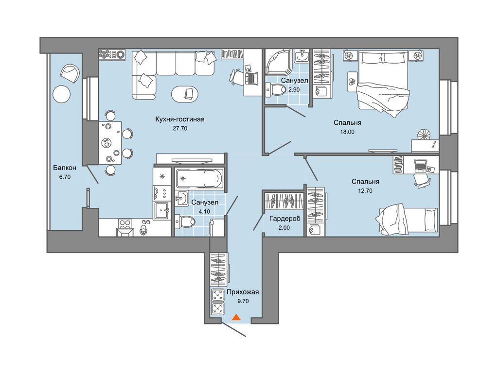 Планировка: просторная кухня-гостиная, уютная спальня, современная ванная комната - все для вашего комфорта.