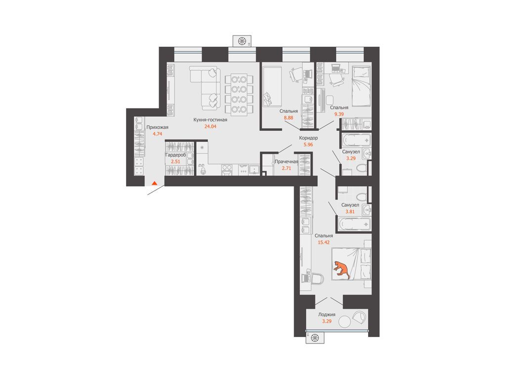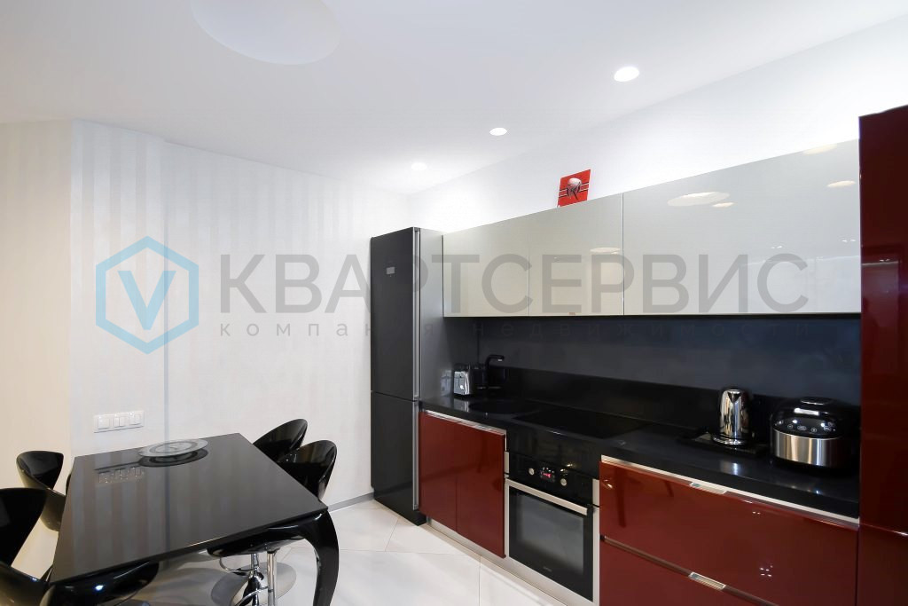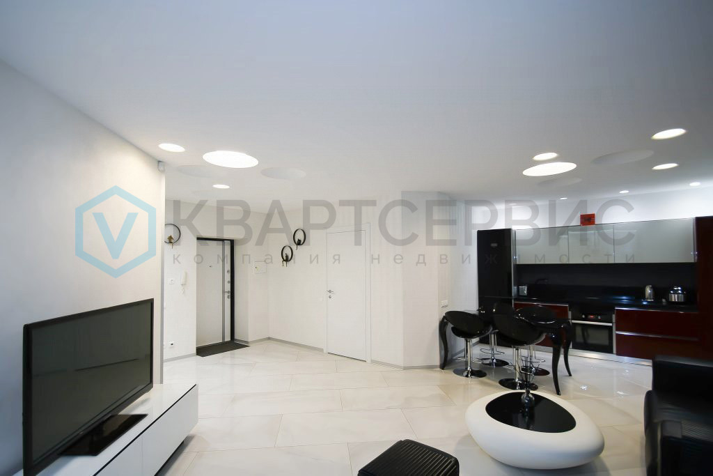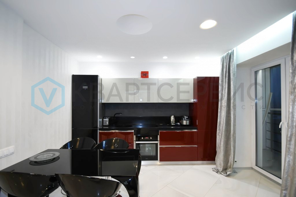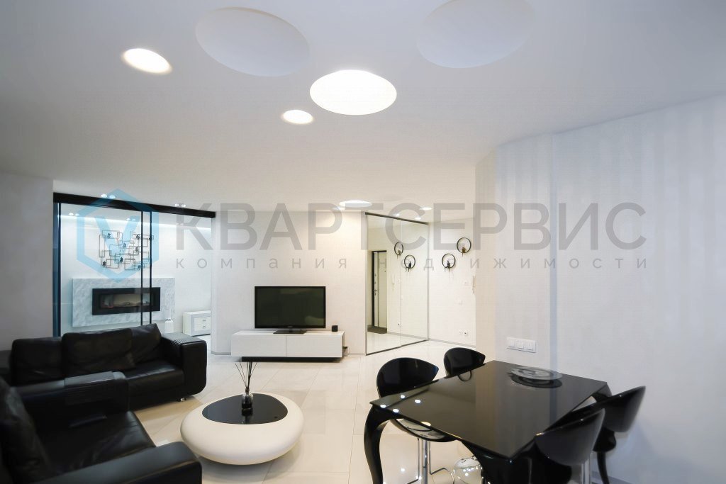 Ремонт: в квартире выполнен качественный дизайнерский ремонт преимущественно из материалов итальянского производства. Новому владельцу достанется вся мебель и техника. Кухня Scavolini (Италия) с встроенной варочной поверхностью и духовым шкафом. Обеденный стол и стулья, а также журнальный, дизайнерский стол, привезенные из Европы. Диваны в зоне отдыха выполнены из натуральной кожи. Кровать с матрасом премиум-класса. Множество мест для хранения, органично вписываются в интерьер и практически незаметны. В спальне установлен камин с функцией обогрева. В гостиной мощный кондиционер, рассчитанный на охлаждение всей квартиры. Во всех помещениях установлен теплый пол и разграничен на несколько зон управления.