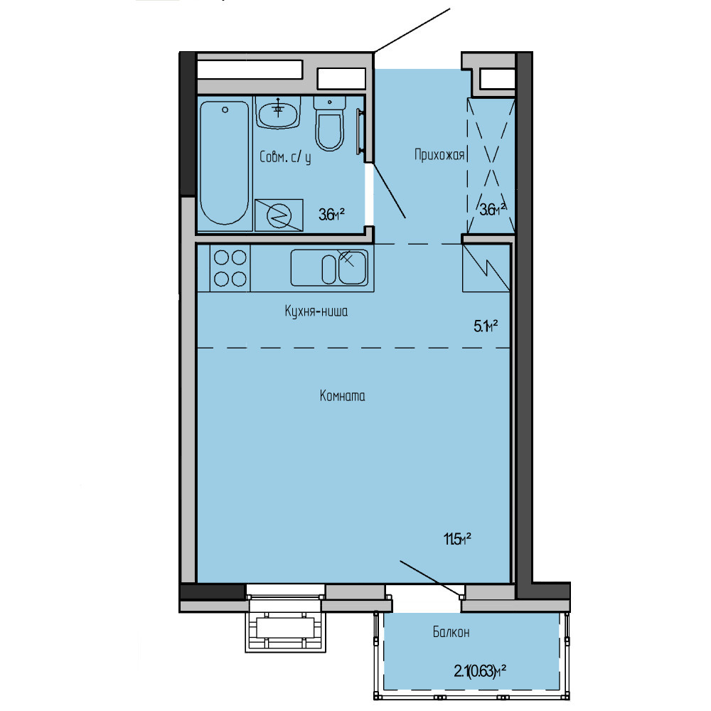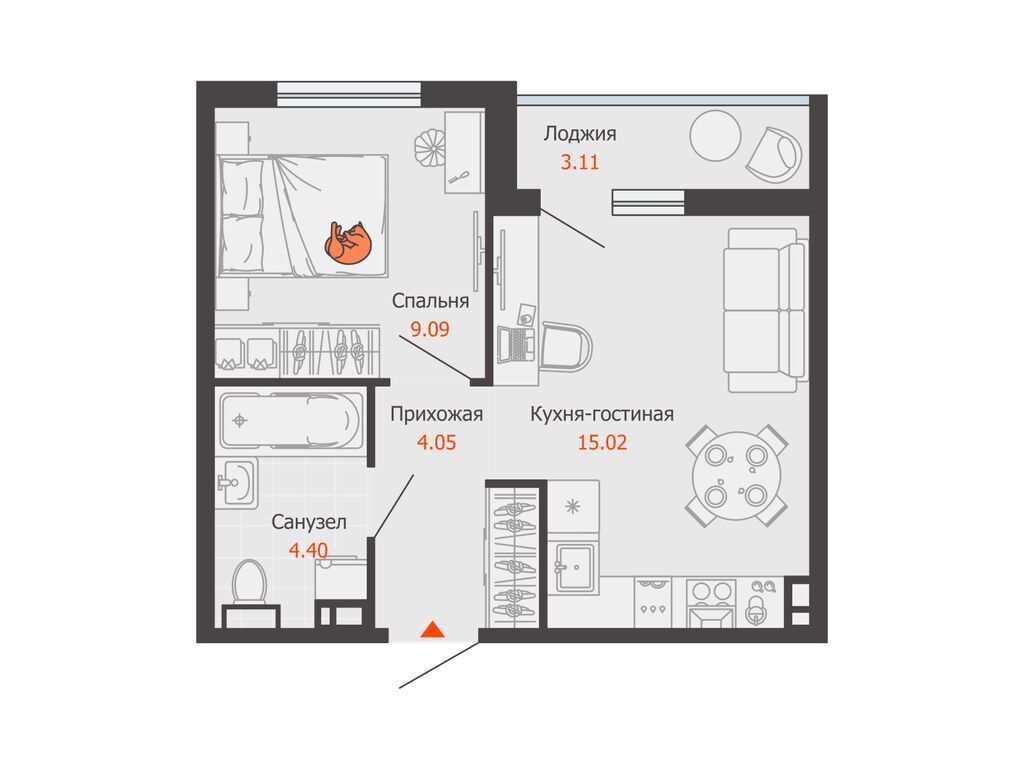 Планировка включает в себя: 2 изолированные комнаты, при входе в квартиру кухня, совмещенный санузел, балкон.