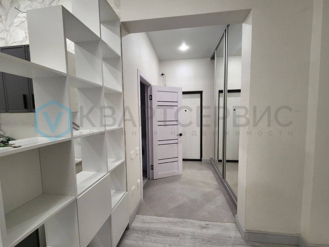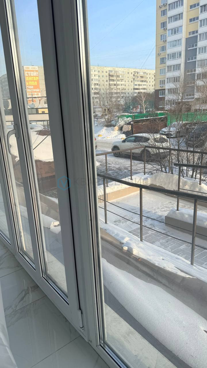 Студия с современным ремонтом и панорамными окнами. Просторная кухня оборудована всем необходимым: холодильник, плита, электрочайник, вытяжка и встроенная мебель. В комнате установлен кондиционер и телевизор. Места хранения-вместительный шкаф-купе и стеллаж.