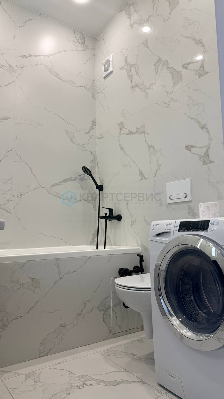 Санузел совмещенный, оформлен в светлых тонах, установлена стиральная машина, есть гигиенический душ. Из окон открывается вид на закрытую территорию двора с детской площадкой. О доме: кирпичный дом 2012 года постройки. Приватный подъезд с отдельным входом на 6 квартир. Парковка за шлагбаумом обеспечивает безопасность автомобиля.