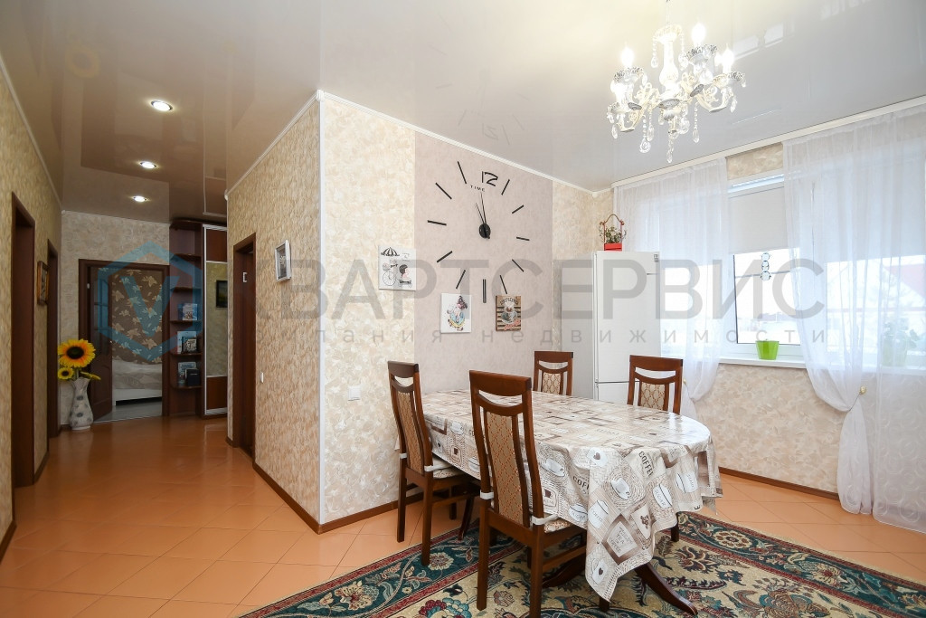 Ремонт: дом выстроен на ленточном фундаменте, внутренние стены из блоков, снаружи обложен кирпичом, между ними утеплитель, крыша - металлочерепица, окна ПВХ. Внутри качественный косметический ремонт, не требует вложений.