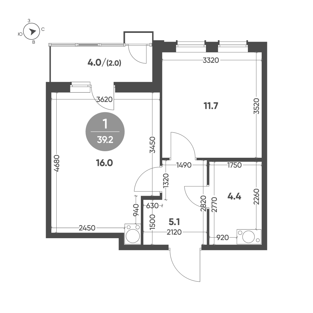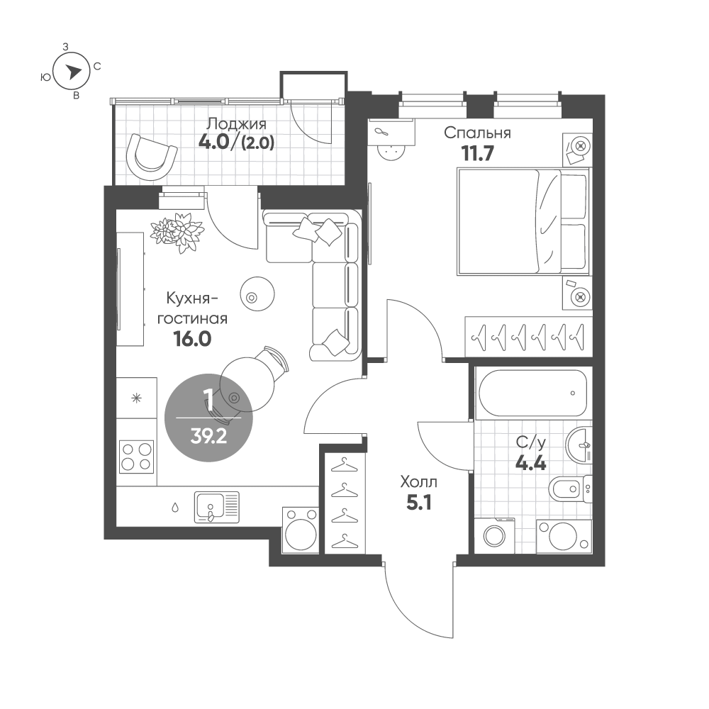 Продается квартира 218, по адресу г. Омск, ул. Волгоградская, корпус Зеленая река, 2 очередь, корпус 2 в Зеленая Река на 7 этаже, с площадью 39.2 м2.