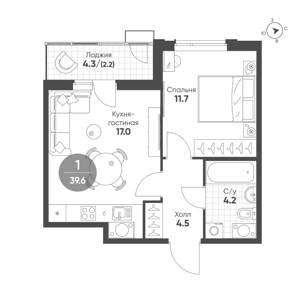 Купить 1к квартиру 39 м² в ЖК Зеленая Река