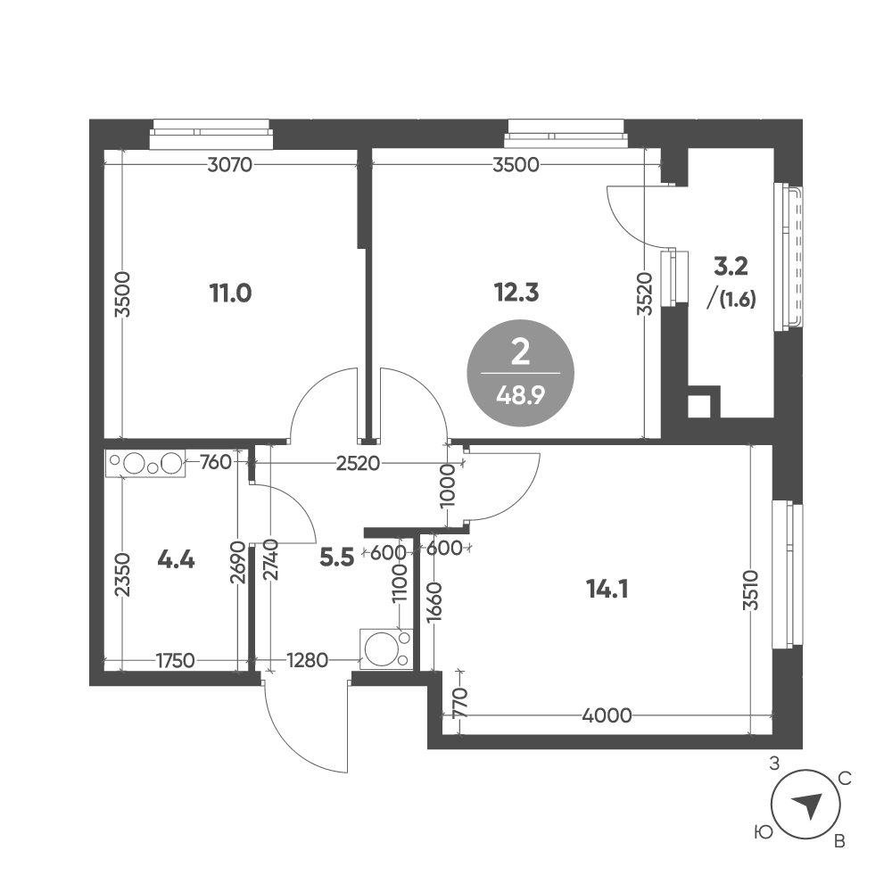 Купить 2к квартиру 48 м² в ЖК Зеленая Река