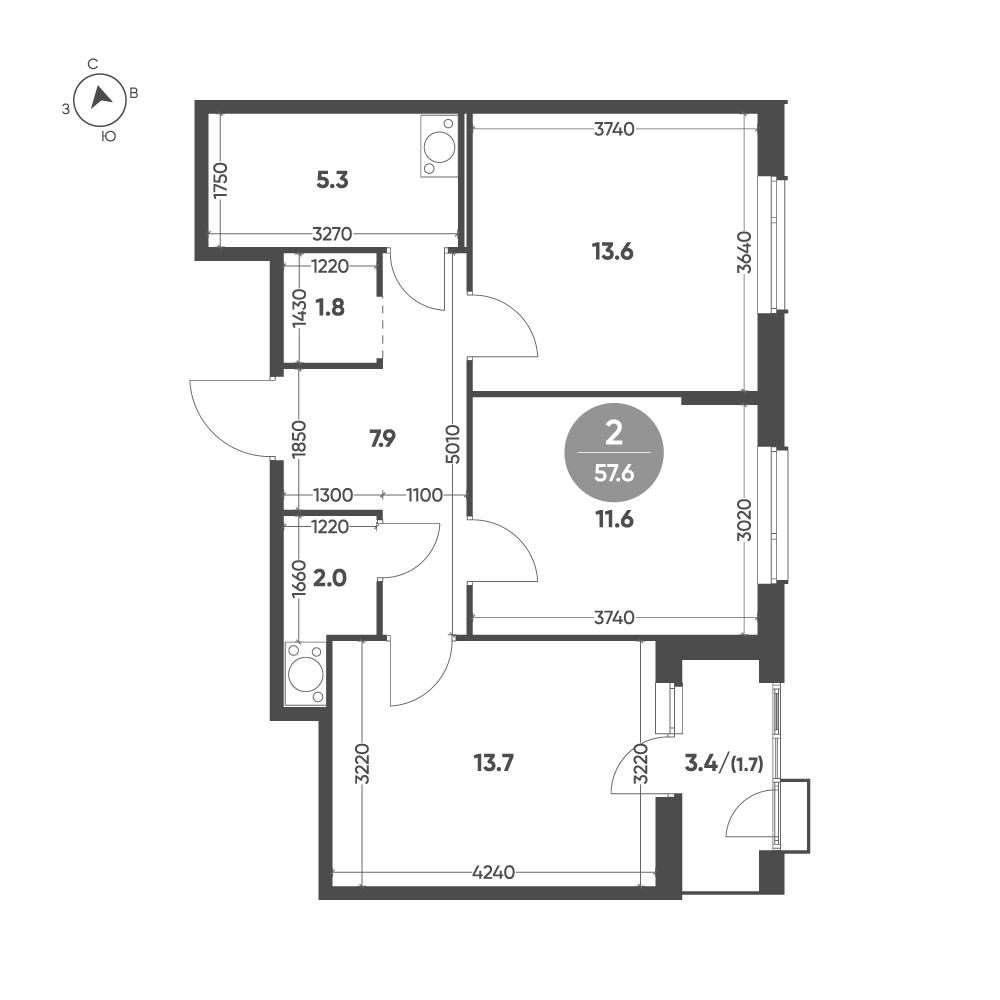 Продается квартира 257, по адресу г. Омск, ул. Волгоградская, корпус Зеленая река, 2 очередь, корпус 3 в Зеленая Река на 3 этаже, с площадью 57.6 м2.