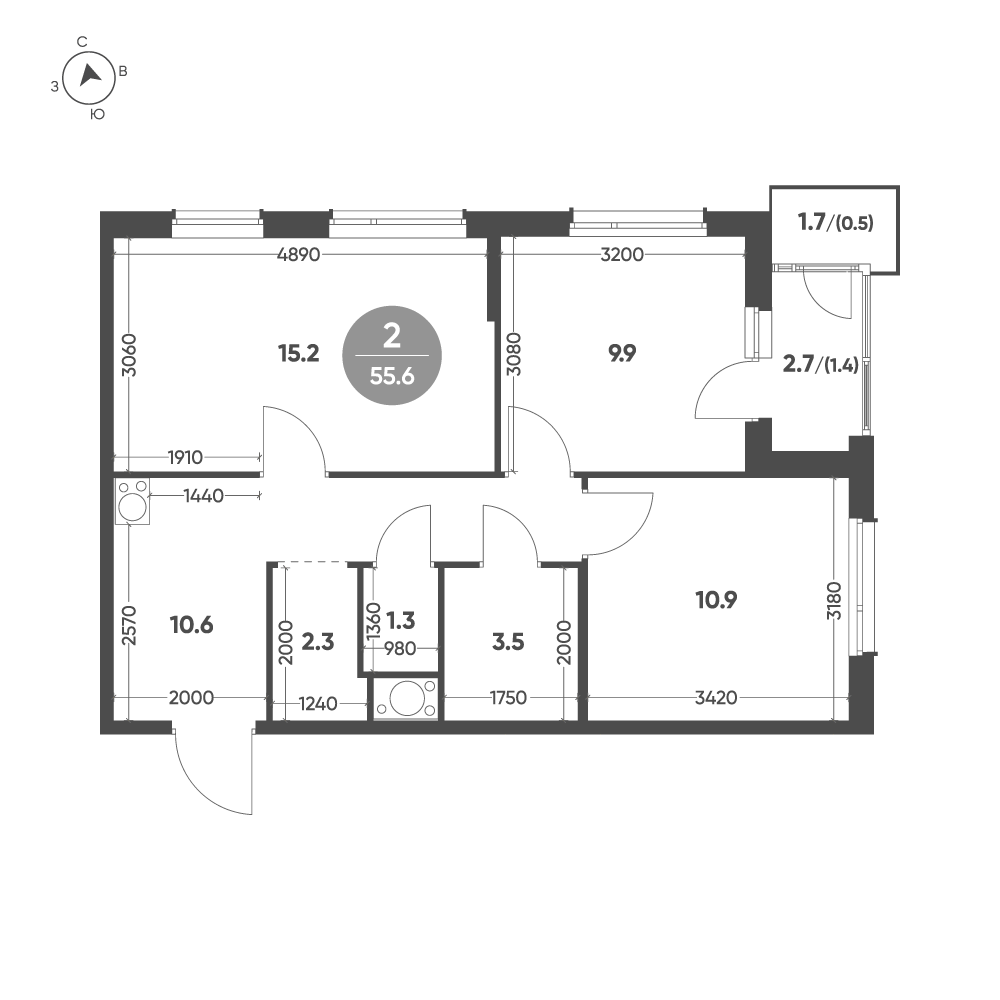 Продается квартира 15, по адресу г. Омск, ул. Волгоградская, корпус Зеленая река, 2 очередь, корпус 1 в Зеленая Река на 5 этаже, с площадью 55.6 м2.