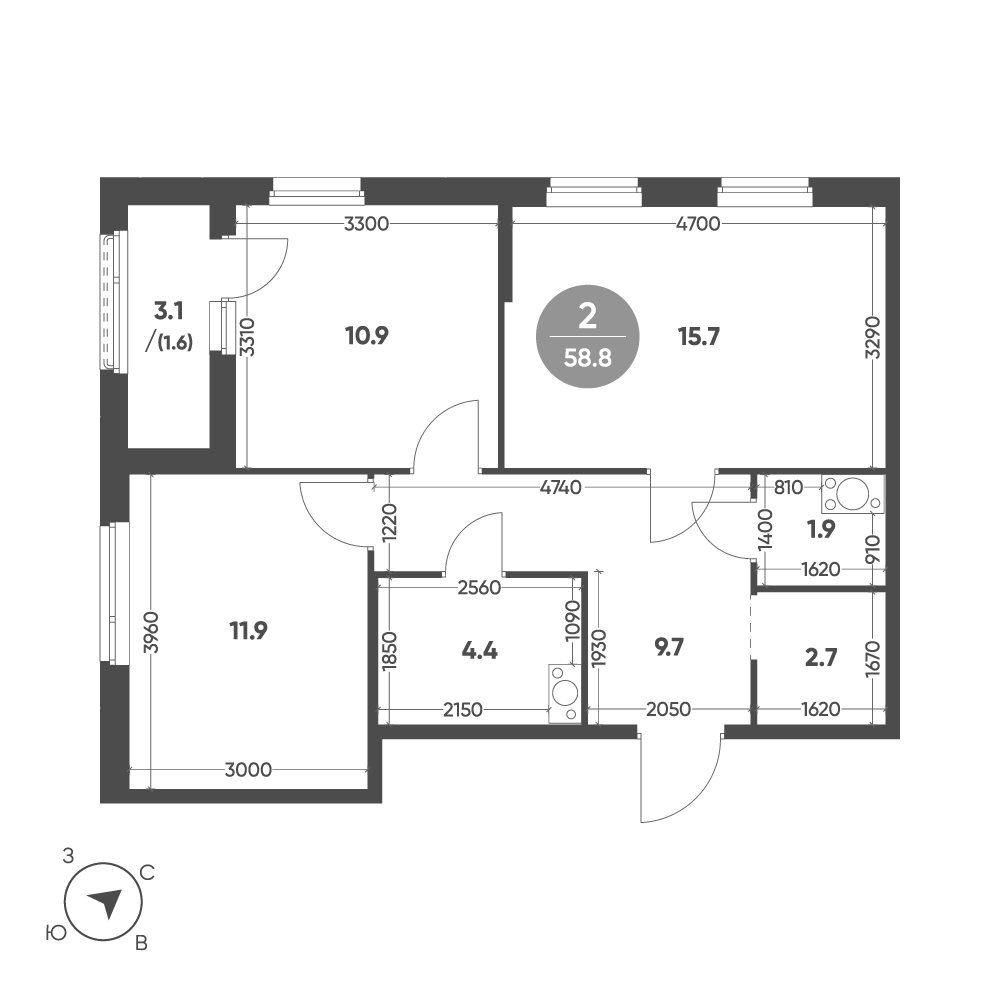 Продается квартира 471, по адресу г. Омск, ул. Волгоградская, корпус Зеленая река, 2 очередь, корпус 4 в Зеленая Река на 3 этаже, с площадью 58.8 м2.