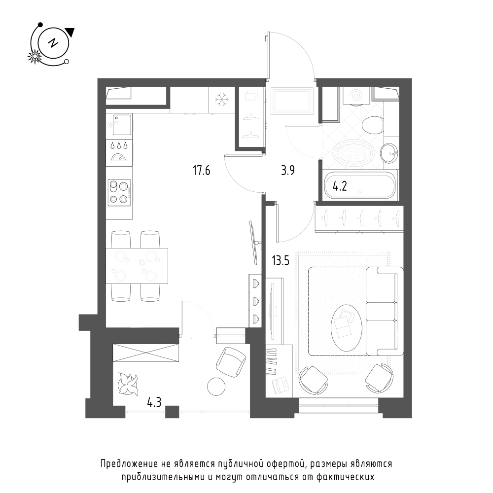 Купить 1к квартиру 41 м² в ЖК Зеленая Река