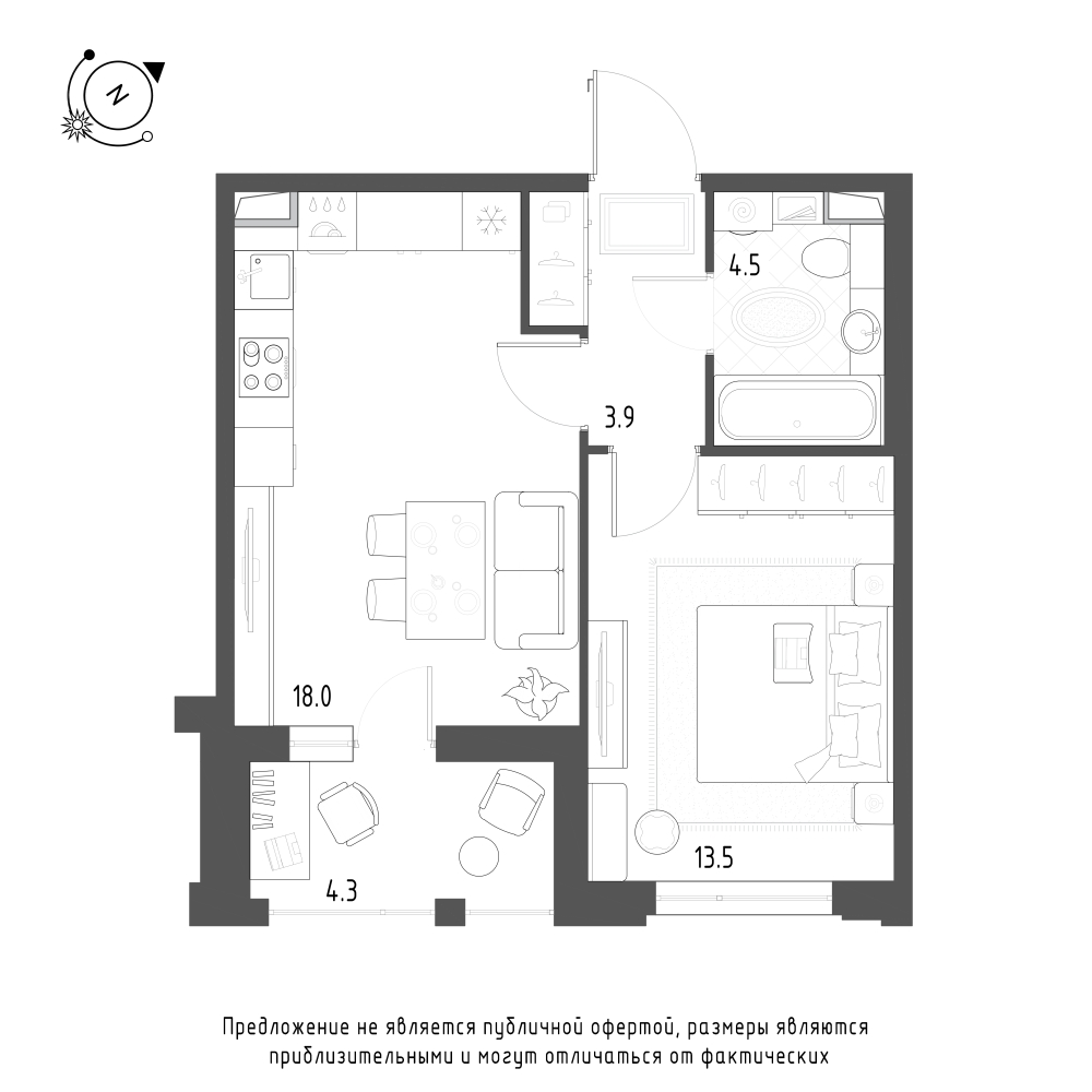 Купить 1к квартиру 42 м² в ЖК Зеленая Река