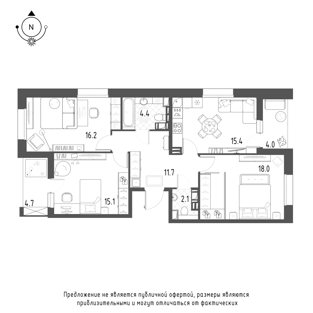 Купить 3к квартиру 87 м² в ЖК Зеленая Река