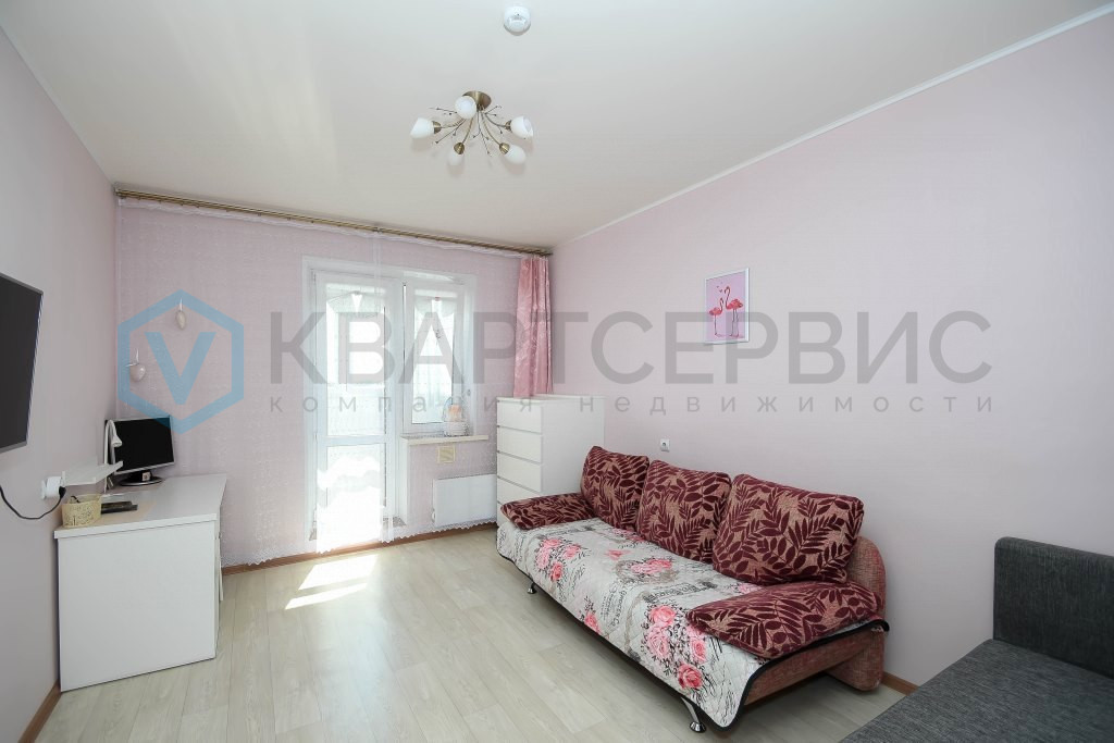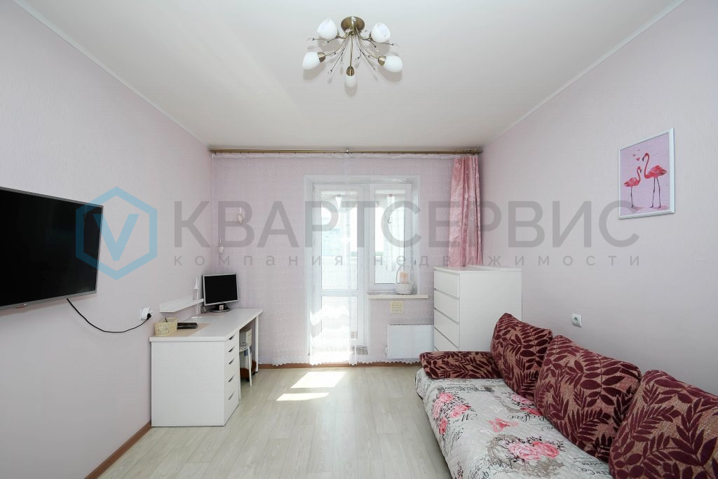 Просторная, функциональная комната, где есть место для уединения и приема гостей.