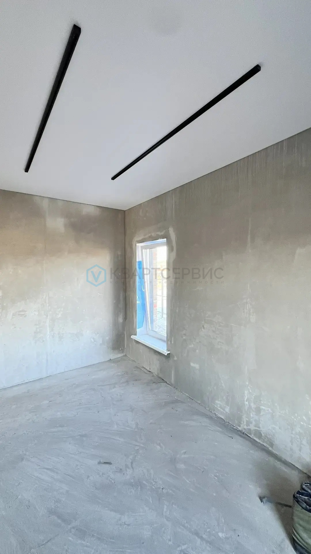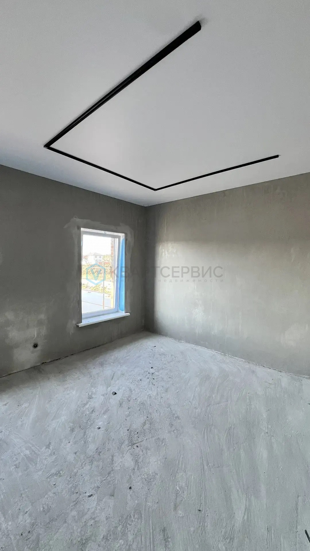 -Отделка внутри: выполнена стяжка пола, оштукатурены стены, установлен натяжной потолок. Осталось сделать финишное покрытие пола и чистовую отделку стен.