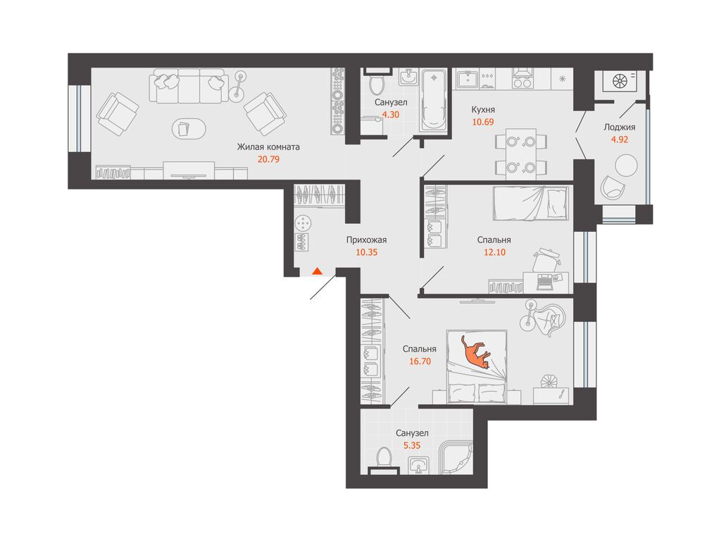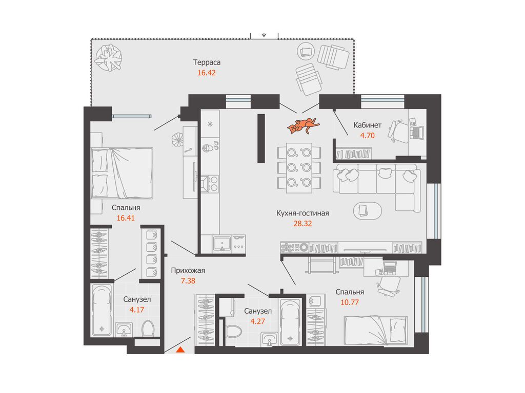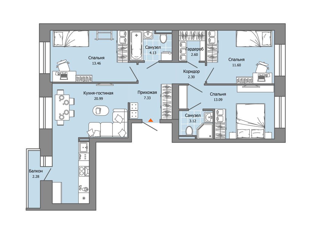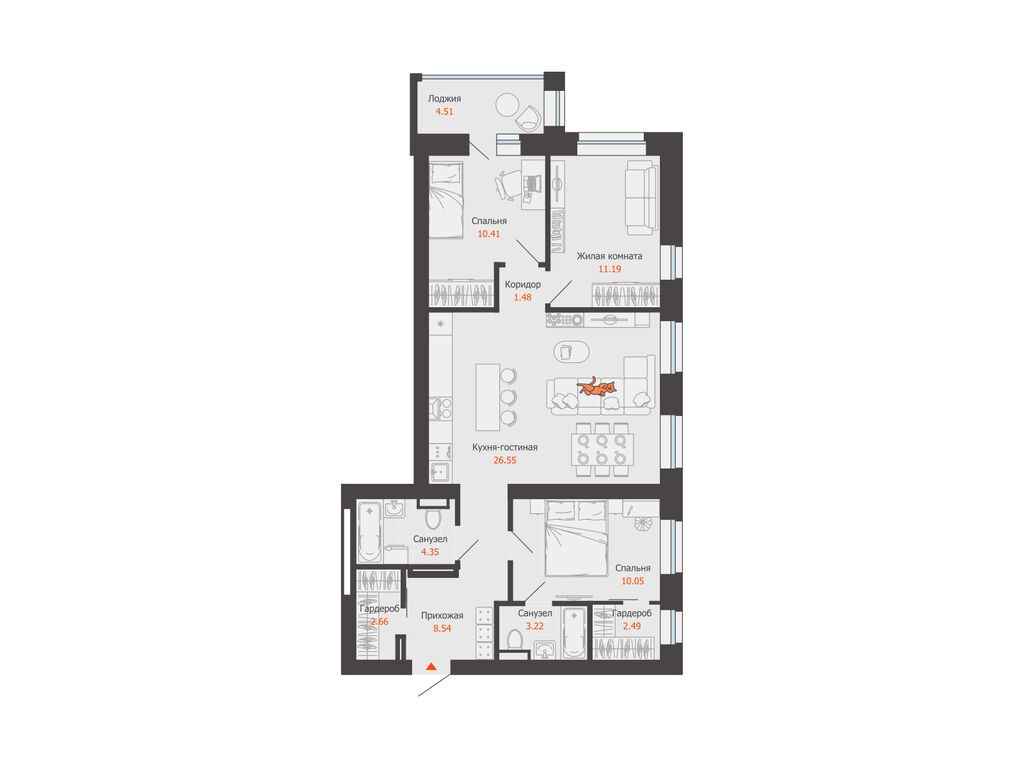 Продается квартира 37, по адресу г. Омск, ул. Волгоградская, корпус Зеленая Река, 1 очередь, корпус 11 в Зеленая Река на 11 этаже, с площадью 86.3 м2.
