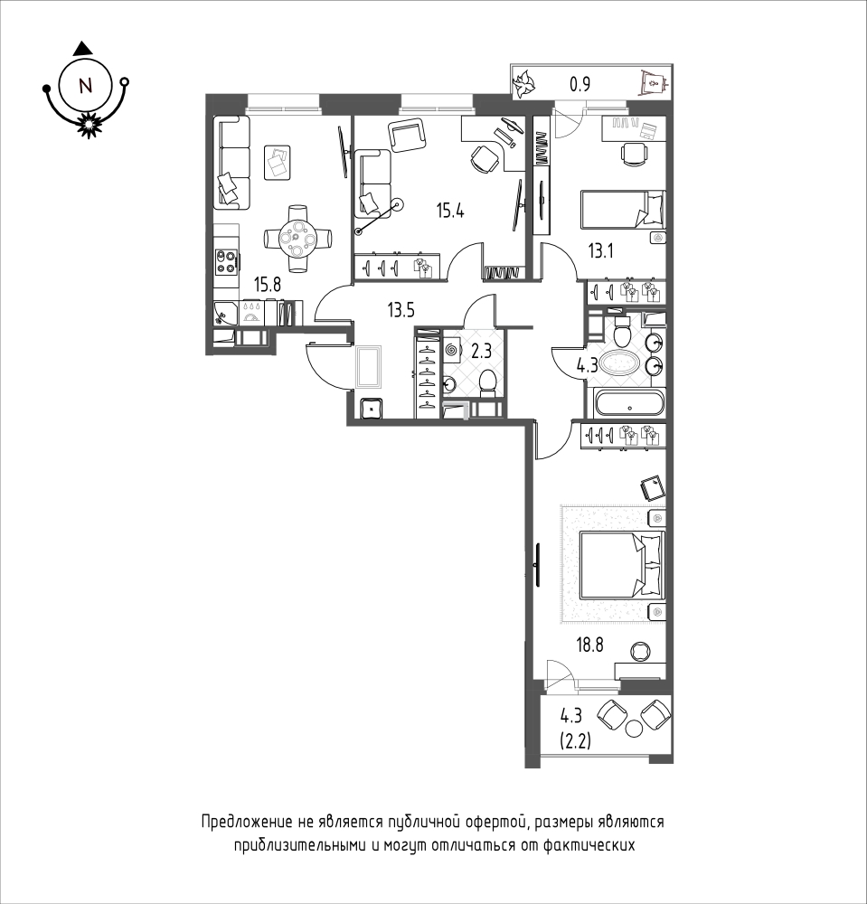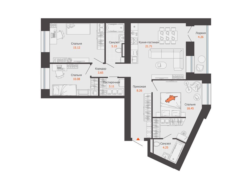 Купить 3к квартиру 86 м² в ЖК Зеленая Река