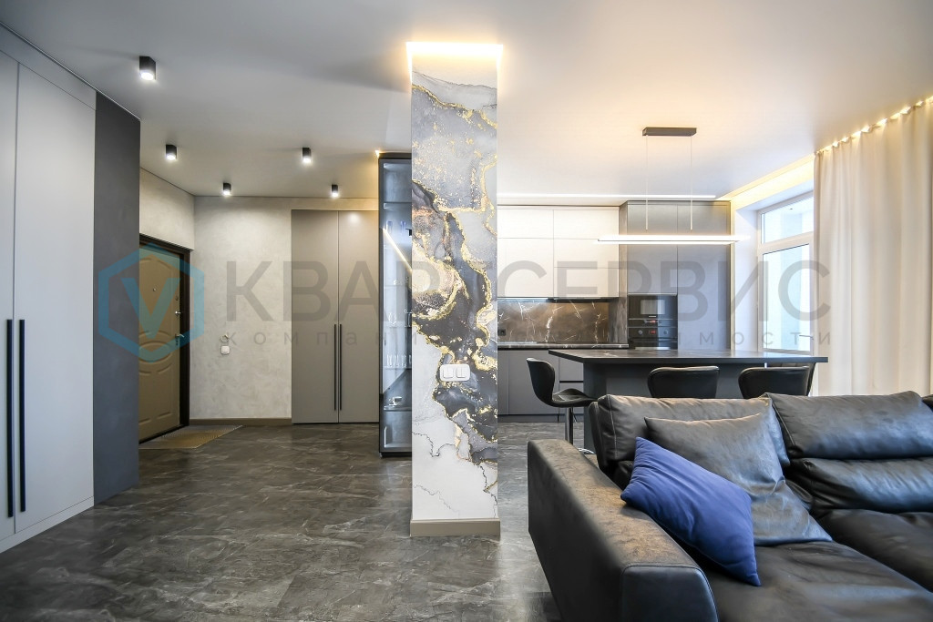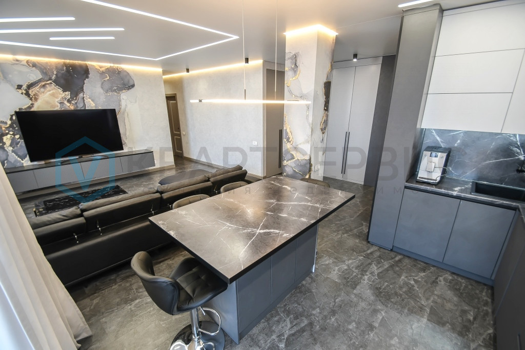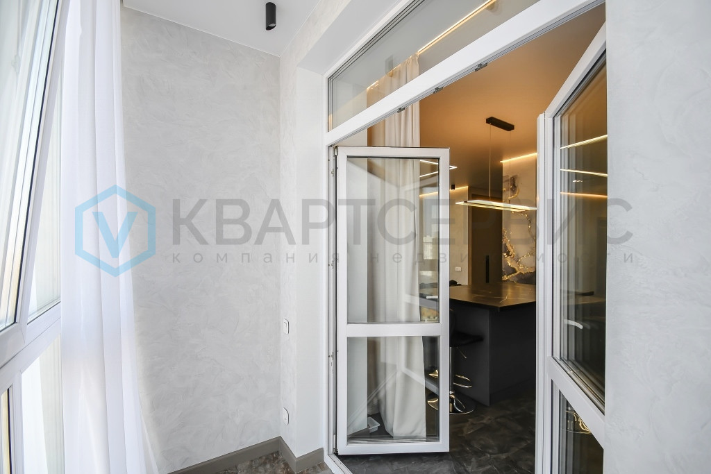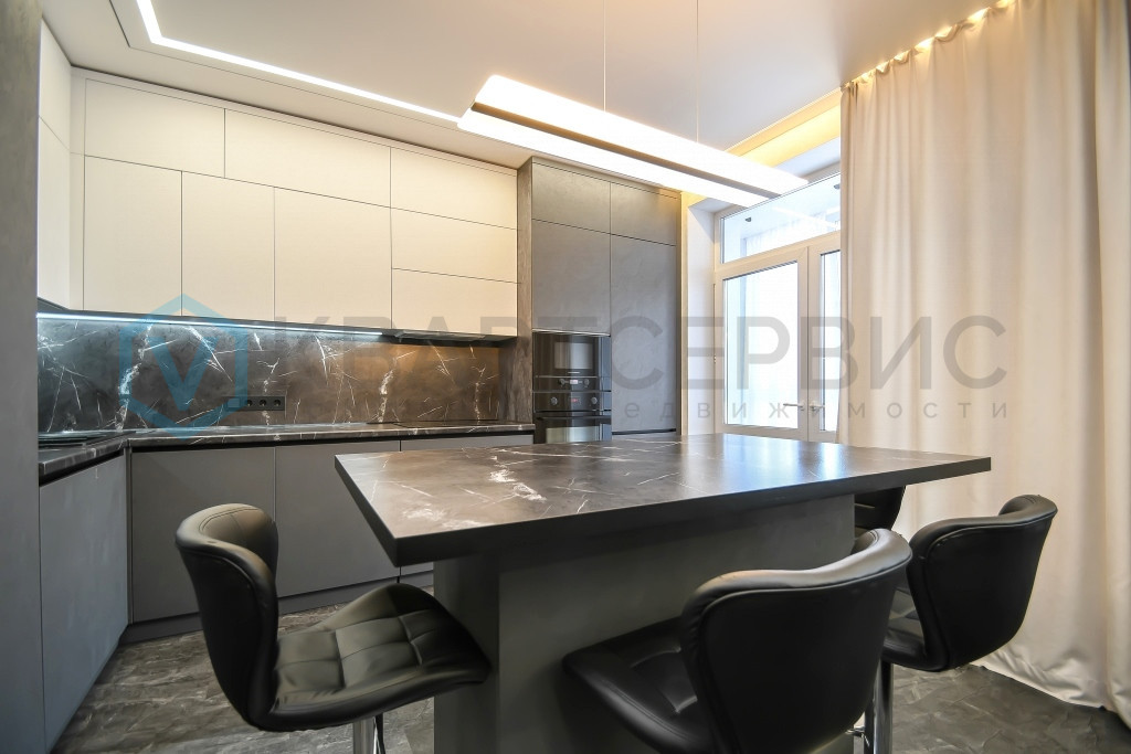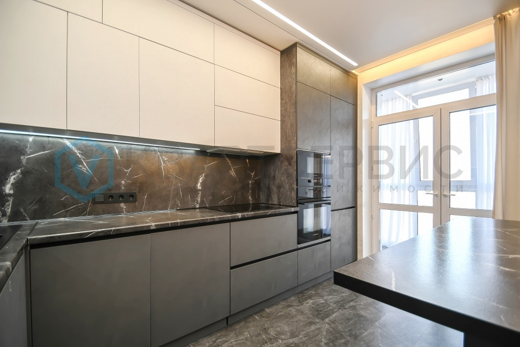 -Кухни - гостиной со встроенным кухонным гарнитуром и бытовой техникой Kuppersberg. Из гостиной выход на утепленную застекленную лоджию;