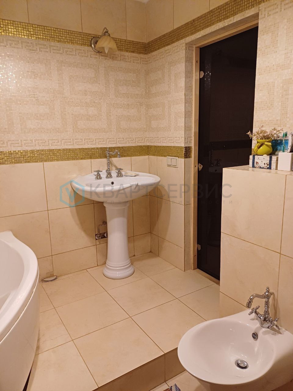 •В цокольном этаже гостиная оборудована вместительным кухонным гарнитуром из массива дерева, большим диваном, санузел облицован итальянским керамогранитом , установлена большая акриловая ванна, биде, сауна с электропечью. Котельная оборудована тремя газовыми котлами фирмы BUDERUS, водонагревателем на 250 литров, гараж отапливаемый, установлены автоматические ворота на пульте управления.