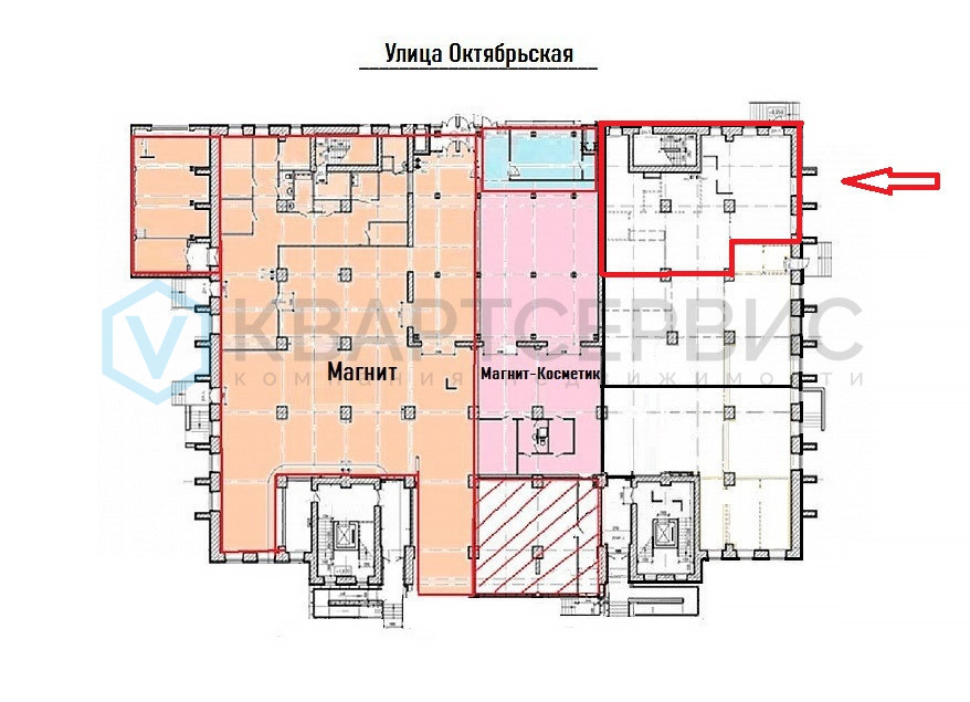 Помещение имеет отдельный вход на транспортную магистраль, улица Октябрьская. Высота потолков 2,95 метра. Есть возможность увеличить площадь.