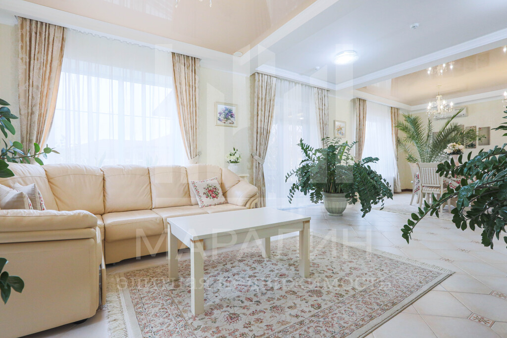 Площадь 371,7 м², 2 этажа и цокольный этаж, 10 соток земли в собственности. Коттедж построен из качественных материалов, по всем технологиям. Коттедж подключен к центральным городским коммуникациям газ, вода, канализация, электричество. Группа помещений 1 этажа: прихожая, кухня, гостиная с дровяным камином, мастер-спальня, котельная, санузел.