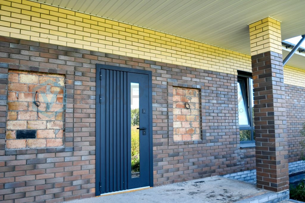 • Материал стен: бетонные блоки + облицовочный кирпич;