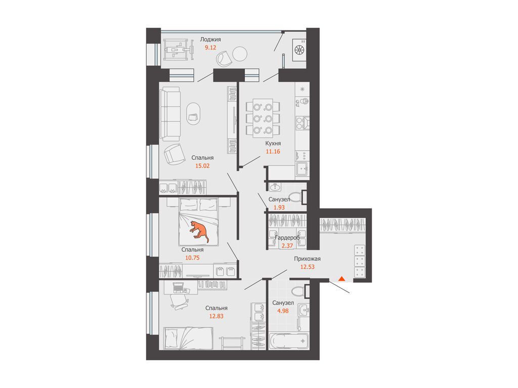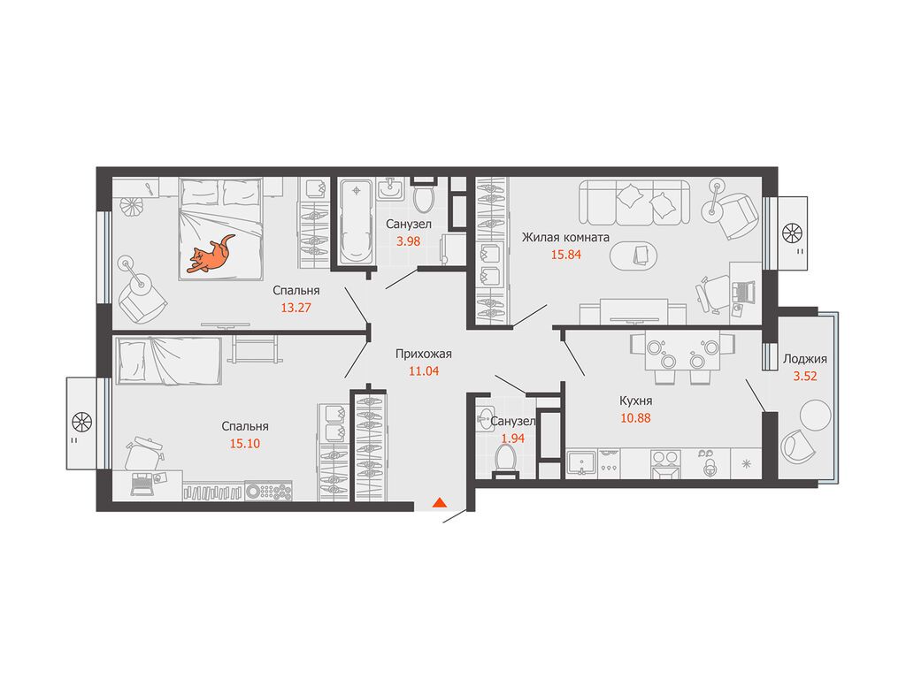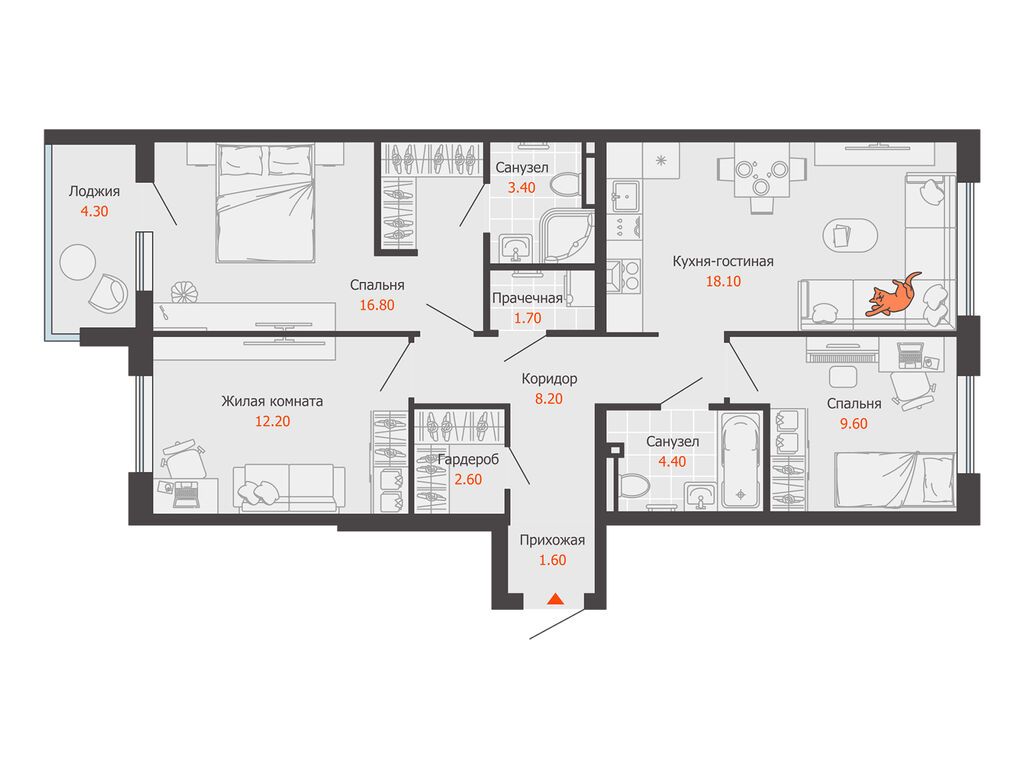 Планировка комфортна и включает три изолированных жилых комнаты, отдельную большую кухню с выходом на лоджию, совмещенный санузел и вместительный холл-прихожую. Балкон и 2 лоджии. В прихожей установлен встроенный шкаф-купе. Квартира теплая и сухая